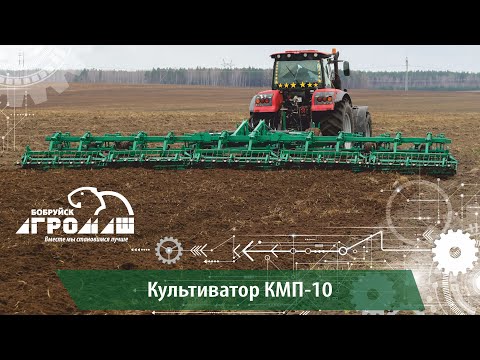 КМП-10 обрабатывает почву на глубину 5 – 12 см и имеет ширину захвата 10 метров.