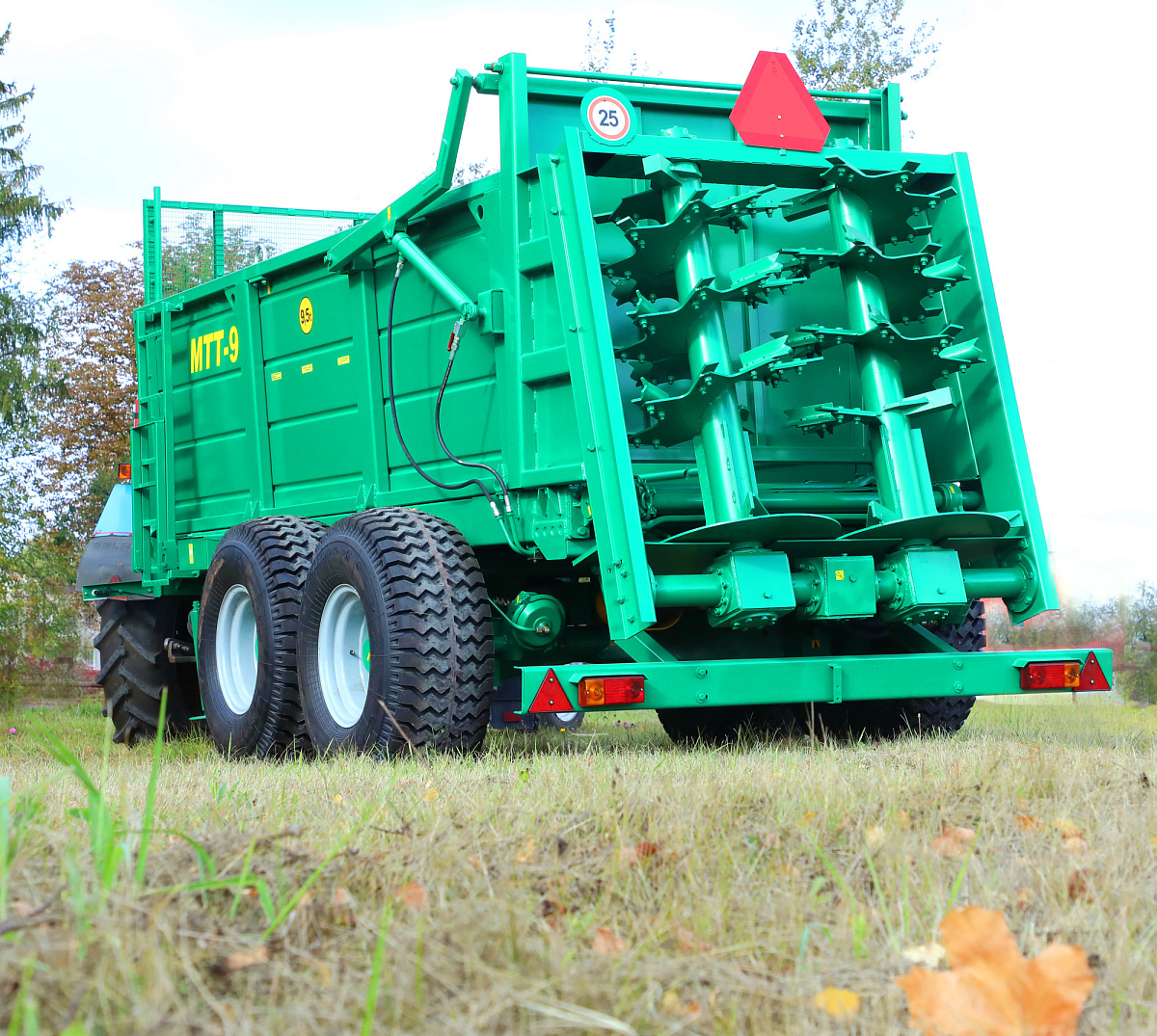 Машина для внесения твердых органических удобрений МТТ-9-1 предназначена для погрузки навалом, транспортирования, частичного разрыхления, измельчения и последующего равномерного распределения по поверхности поля органических удобрений в виде подстилочного навоза и приготовленных на его основе компостов.