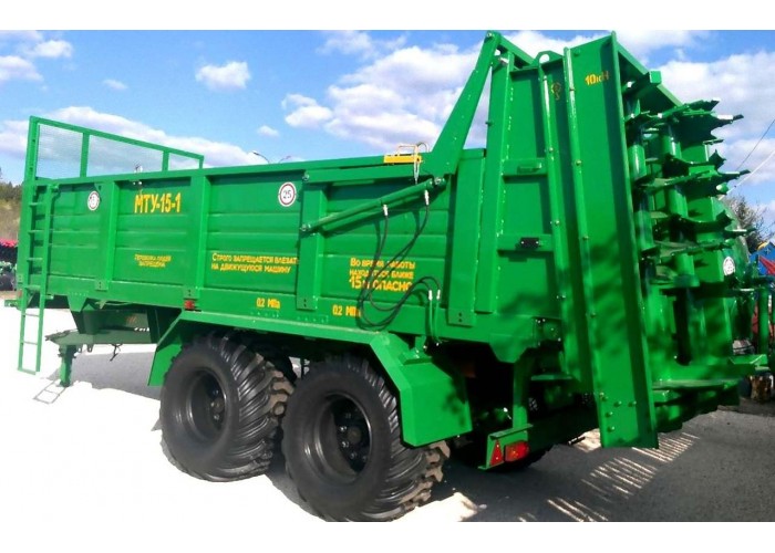 Машина МТУ-15-1 предназначена для транспортировки и сплошного поверхностного внесения твердых органических удобрений, а при снятом разбрасывающем органе - для перевозки других сельскохозяйственных грузов с разгрузкой конвейером назад.