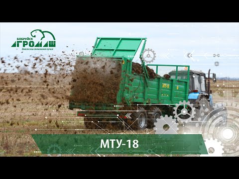 Машина МТУ-18 предназначена для транспортировки и сплошного поверхностного внесения твердых органических удобрений, а при снятом разбрасывающем органе - для перевозки других сельскохозяйственных грузов с разгрузкой конвейером назад.